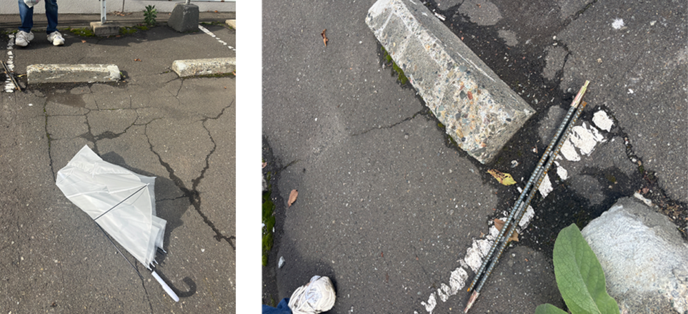 また、小さなゴミだけではなく傘や金属棒など大型のゴミも放置されていました。