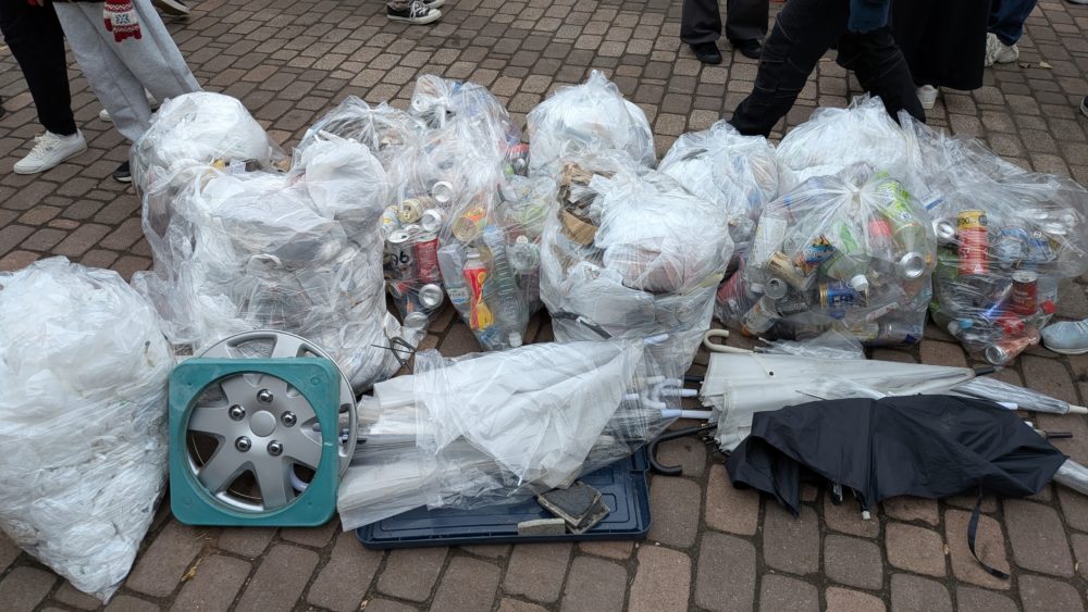 1時間程のクリーンアップ活動で想像以上に多くのゴミが集まりました。